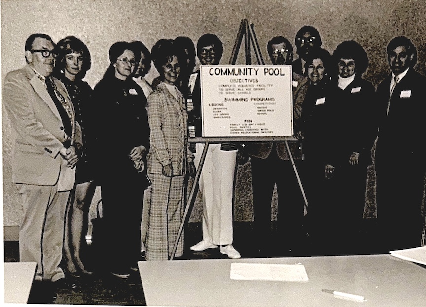 By May 1975, the pool committee focused their efforts on persuading the City, the school district, Park and Recreation leadership as well as the County Board of Supervisors to adopt and implement a community service tax. The Clairemont Swimming Pool Committee published an 11-page open letter to the community at large and to the above agencies detailing their nationwide research on minimal community swimming pool standards including guidelines for publicly owned pools’ purposes, safety features, and three actual design layouts complete with perimeter measurements.